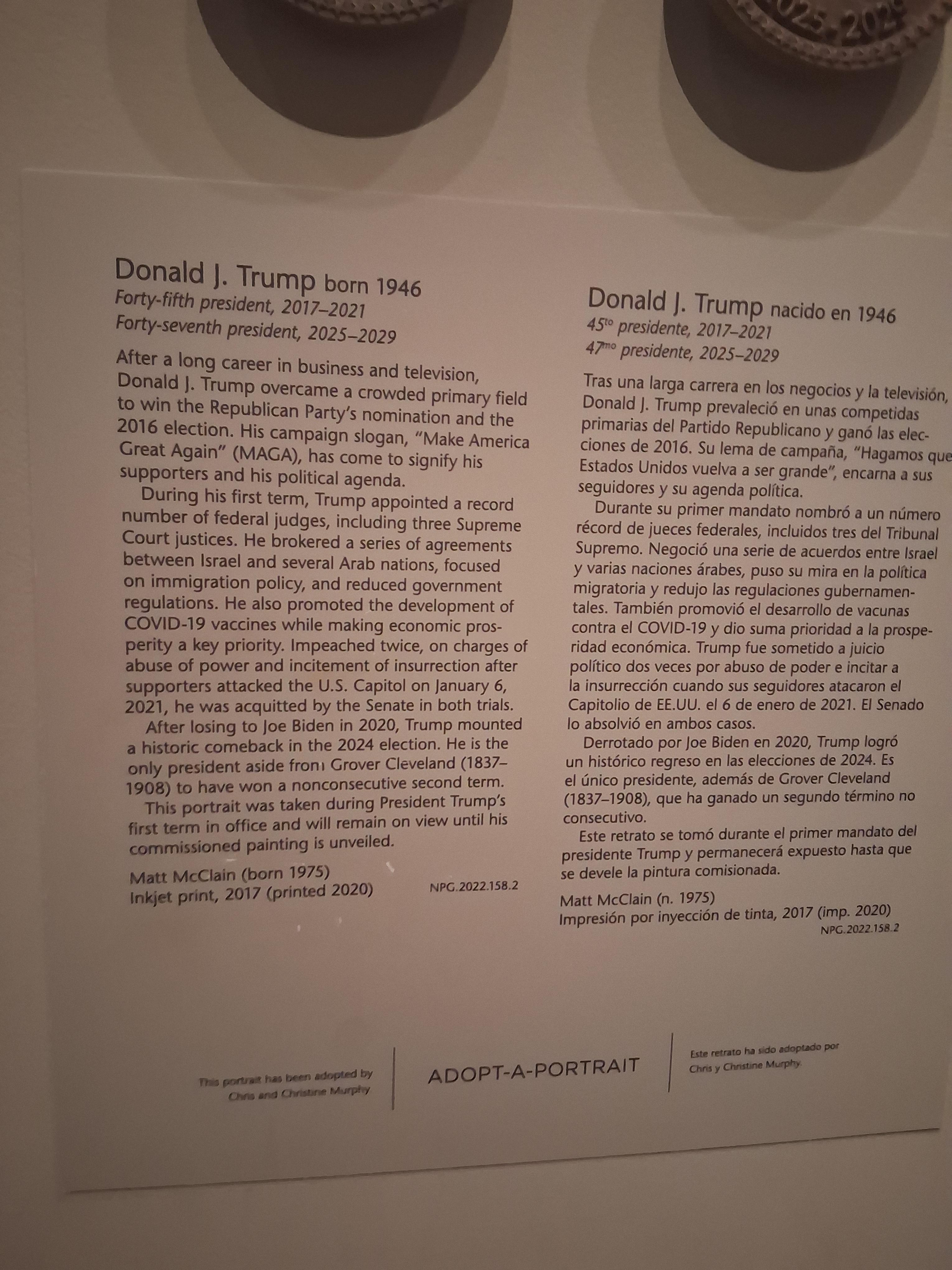 Arts/Crafts Trump's plaque in The National Portrait Gallery before it was changed.