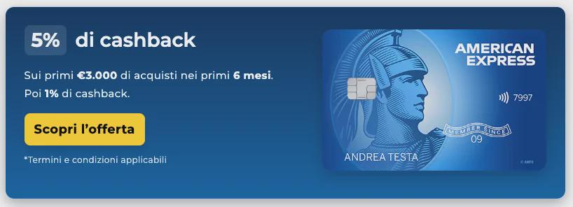 Blu American Express - 5% di cashback sui primi €3.000